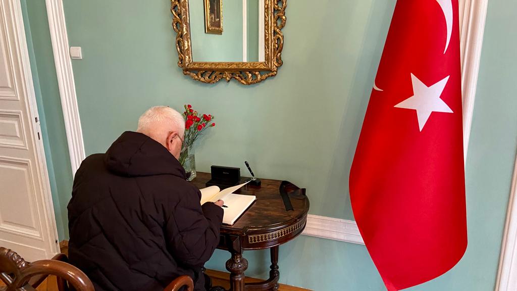 Book of condolence opened at the Turkish Embassy in Bucharest after deadly earthquake. The flag was lowered at half-mast