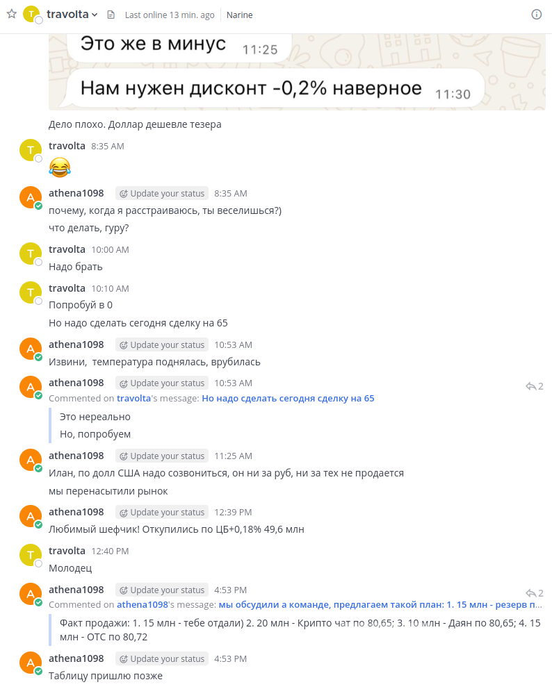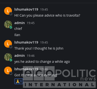 According to internal discussions, members of Evrazia use pseudonyms. For example, Ilan Shor allegedly used the name „Travolta.”