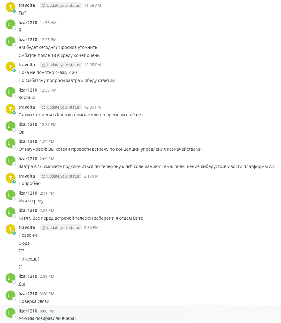 According to internal discussions, members of Evrazia use pseudonyms. For example, Ilan Shor allegedly used the name „Travolta.”